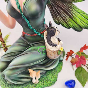 Green Fairy w. Dog in Bag (approx. 43x32x20cm)