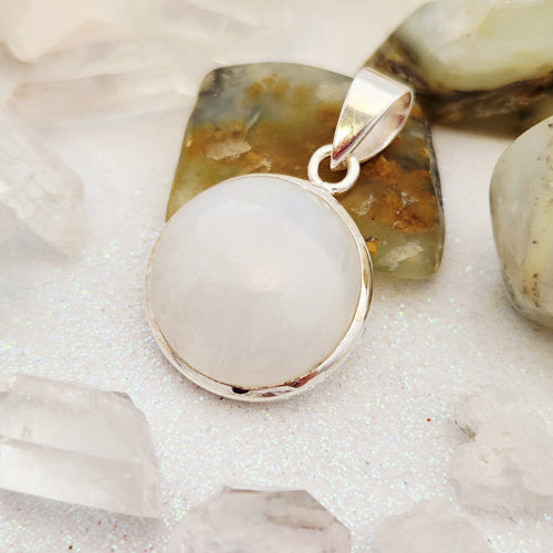 Rainbow Moonstone Circular Pendant (sterling silver)