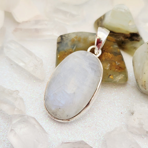 Rainbow Moonstone Oval Pendant (sterling silver)