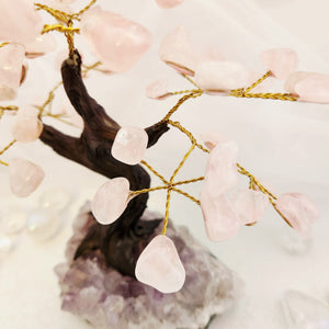 Rose Quartz Crystal Tree on Amethyst Cluster Base (approx. 17x18.7cm)