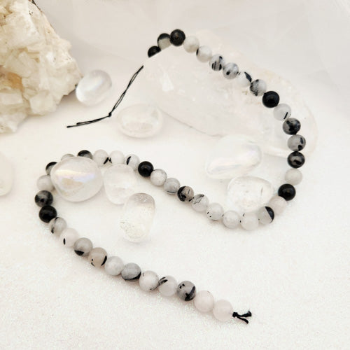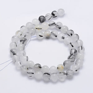 Tourmalinated Quartz Round Bead Strand, 8-9mm Beads, Assorted