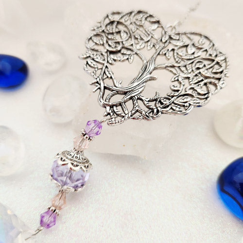Tree of Life Heart w. Hanging Prism & Beads (alloy & glass)