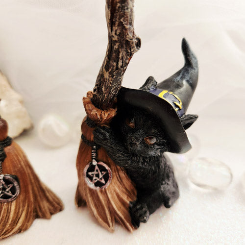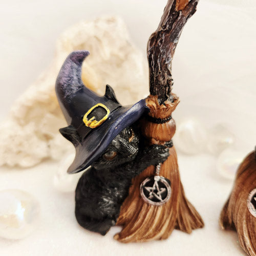 Witchy Cat w. Broom (assorted. left or right facing. approx, 11.5x6.8cm)