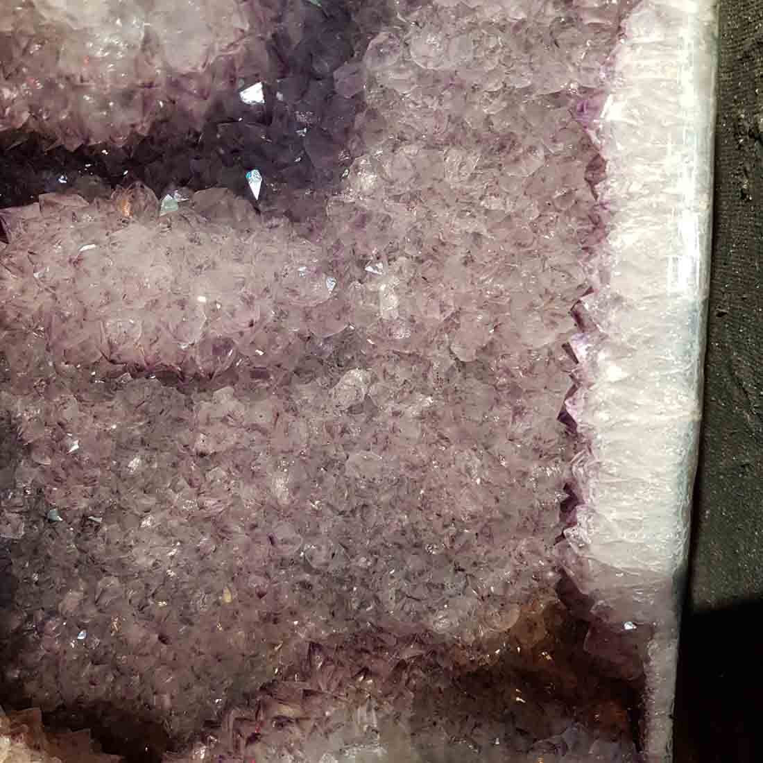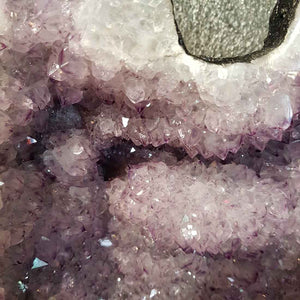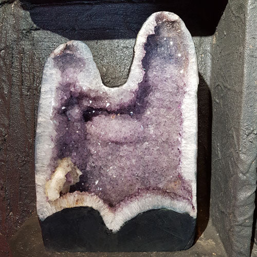 This Amethyst Geode is cherished for its calming energy, spiritual protection, and intuitive clarity. Formed as a natural hollow cavity lined with shimmering amethyst crystals, each amethyst geode is believed to gently radiate soothing, uplifting energy into its surroundings.