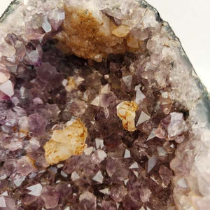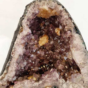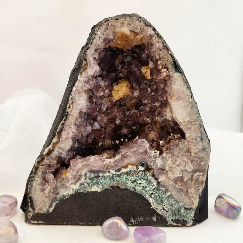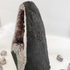 This Amethyst Geode is cherished for its calming energy, spiritual protection, and intuitive clarity. Formed as a natural hollow cavity lined with shimmering amethyst crystals, each amethyst geode is believed to gently radiate soothing, uplifting energy into its surroundings.