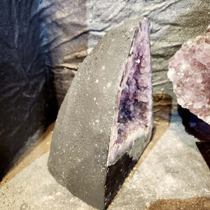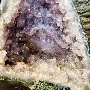 This Amethyst Geode is cherished for its calming energy, spiritual protection, and intuitive clarity. Formed as a natural hollow cavity lined with shimmering amethyst crystals, each amethyst geode is believed to gently radiate soothing, uplifting energy into its surroundings.