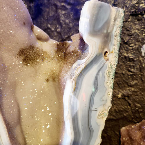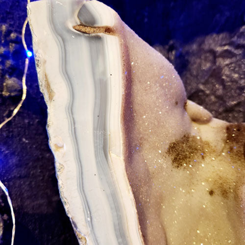 Place the Blue Lace Agate crystal in a calm space to gently radiate soothing energy throughout the room.