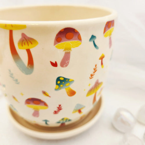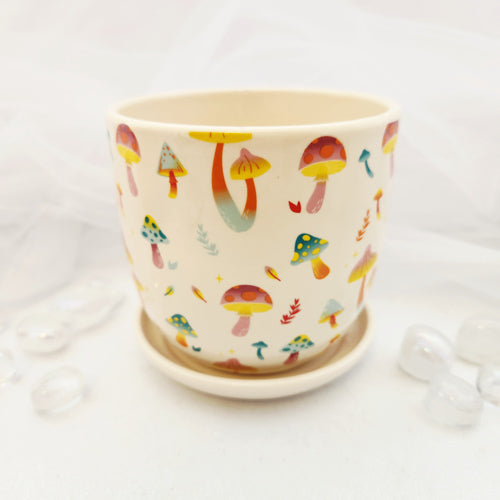 Funky Fungi Mushroom Plant Pot w. Saucer (approx. 11x11cm)