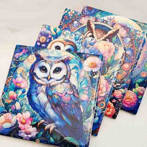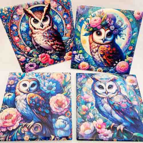 H:10.8 x W:10.8 cm - These wistfully wise owl ceramic coasters are crafted from a durable combination of ceramic with a cork back.