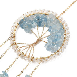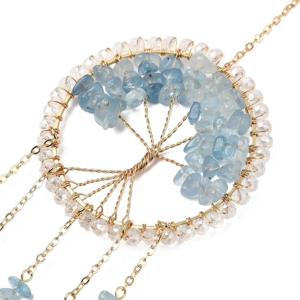 Aquamarine Tree of Life Hanging w. Prisms (approx. 31cm)