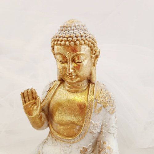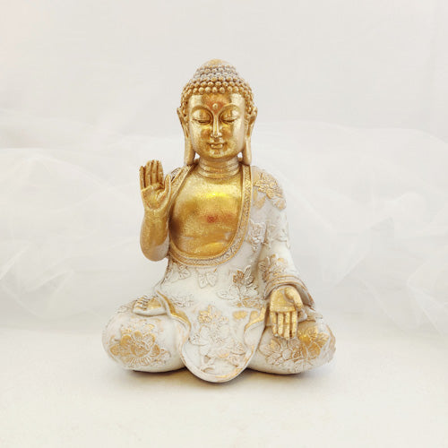 Gold & White Meditating Buddha (approx. 19.5x14.5cm)