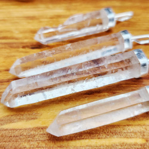 Clear Quartz Natural Point Pendant (assorted. silver metal cap)