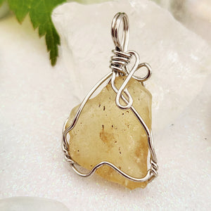 Libyan Desert Glass aka Libyan Gold Tektite Wrapped Pendant (silver metal)