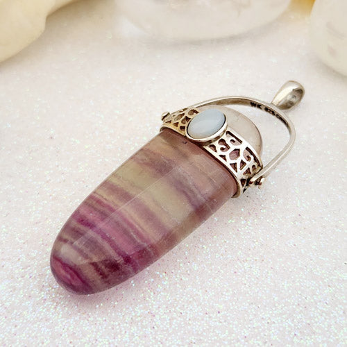 Rainbow Fluorite & Opalite Pendant (sterling silver. pre-loved by Riny)