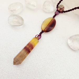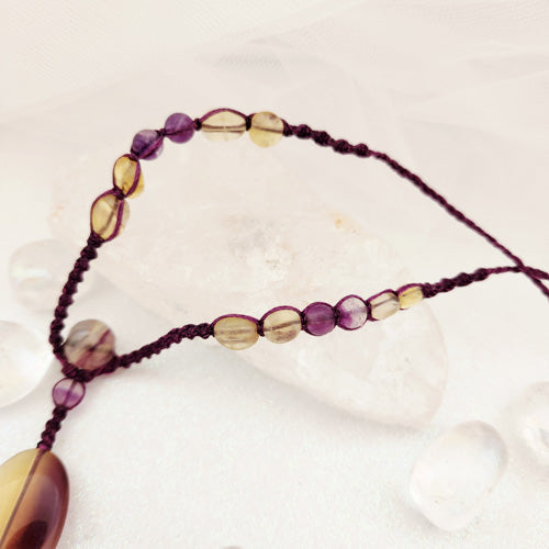 Yellow & Purple Fluorite Wrapped Pendant (hand crafted in Aotearoa New Zealand)