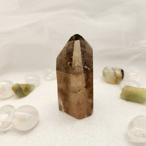 Smoky Quartz Polished Point w. Inclusions (approx. 6.7x8.3cm)