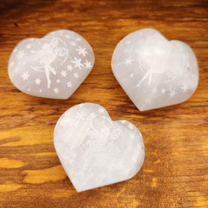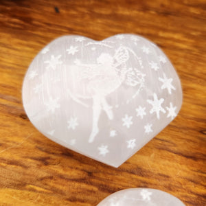 Fairy on Moon Selenite Heart (assorted. approx. 4.4-4.9x5-5.3cm)