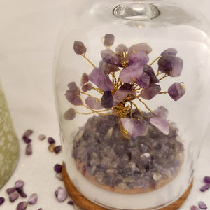Amethyst Crystal Wish Tree in Glass Dome w. Beautiful Box, Assorted
