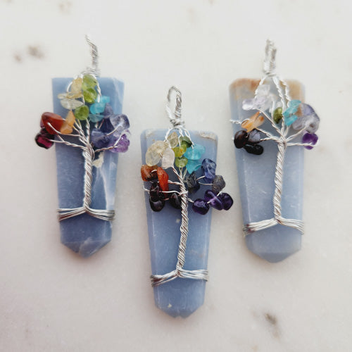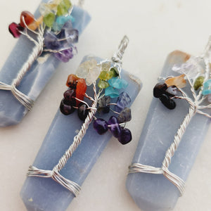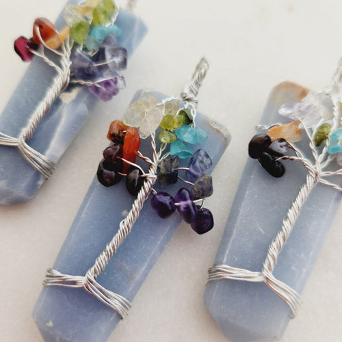 Angelite Pendant with Wire Wrapped Tree of Life (silver metal. assorted)