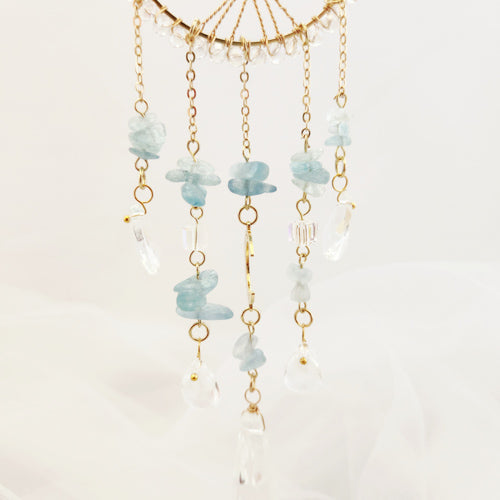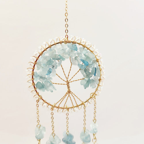Aquamarine Tree of Life Hanging w. Prisms (approx. 31cm)