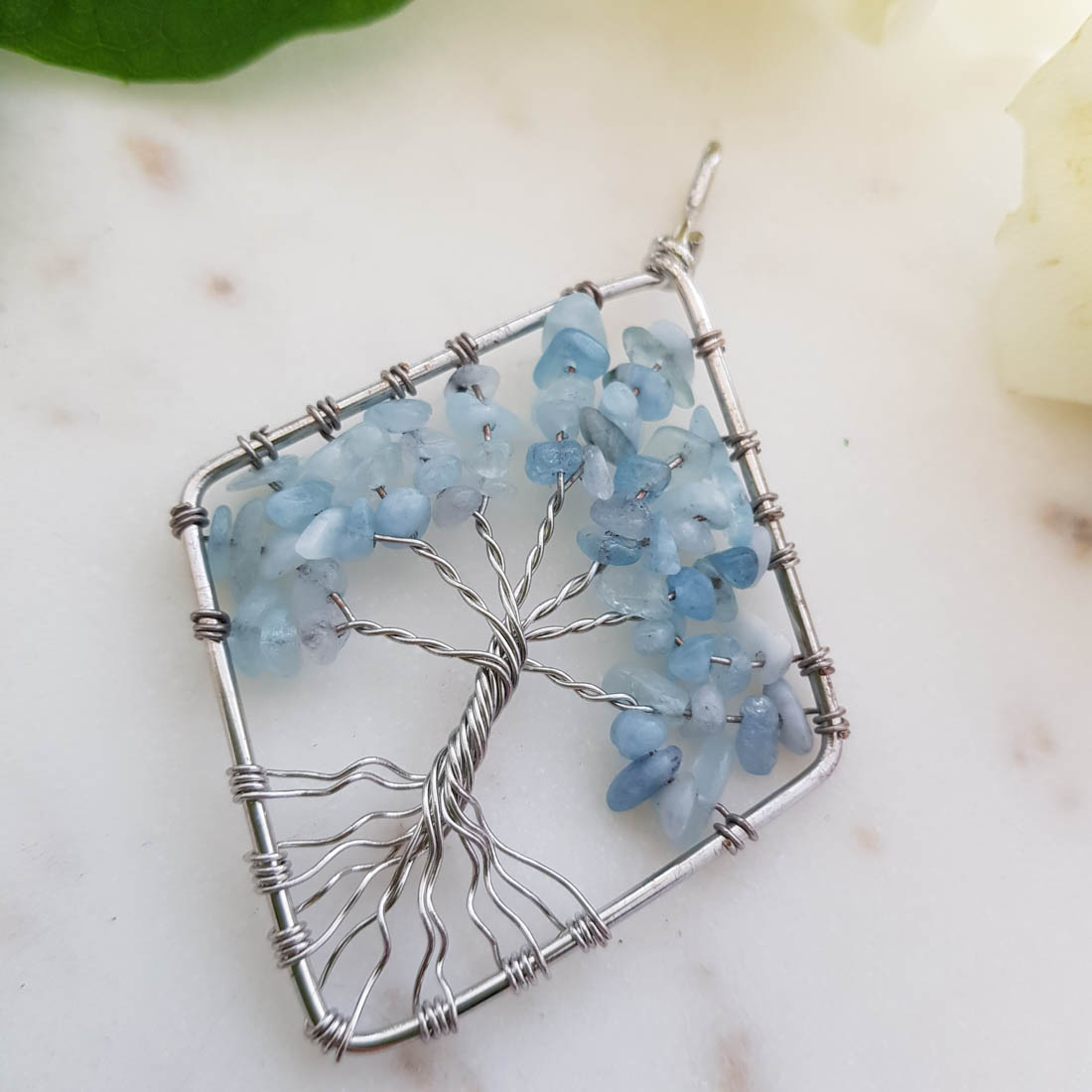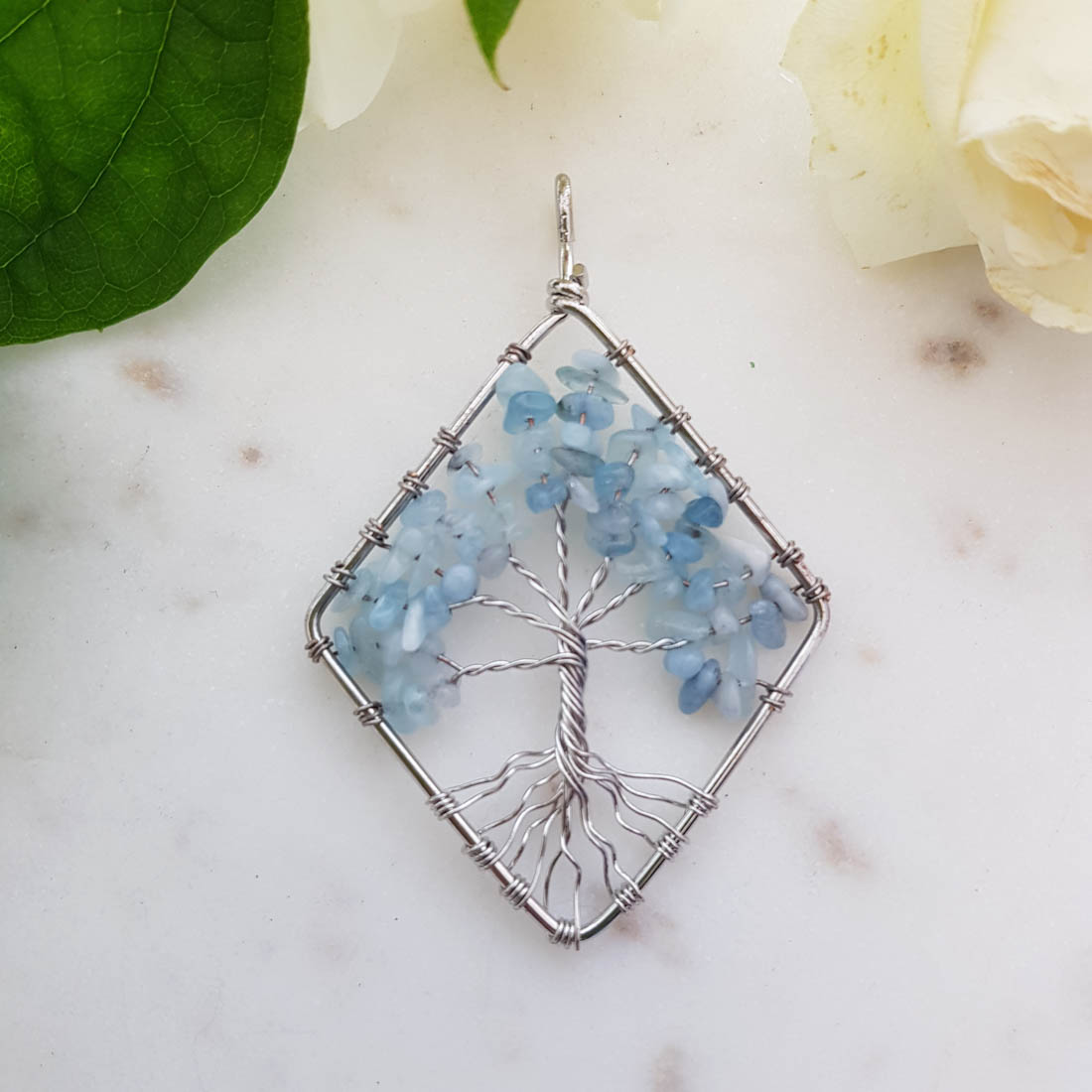 Aquamarine Tree of Life Pendant (assorted. silver metal)