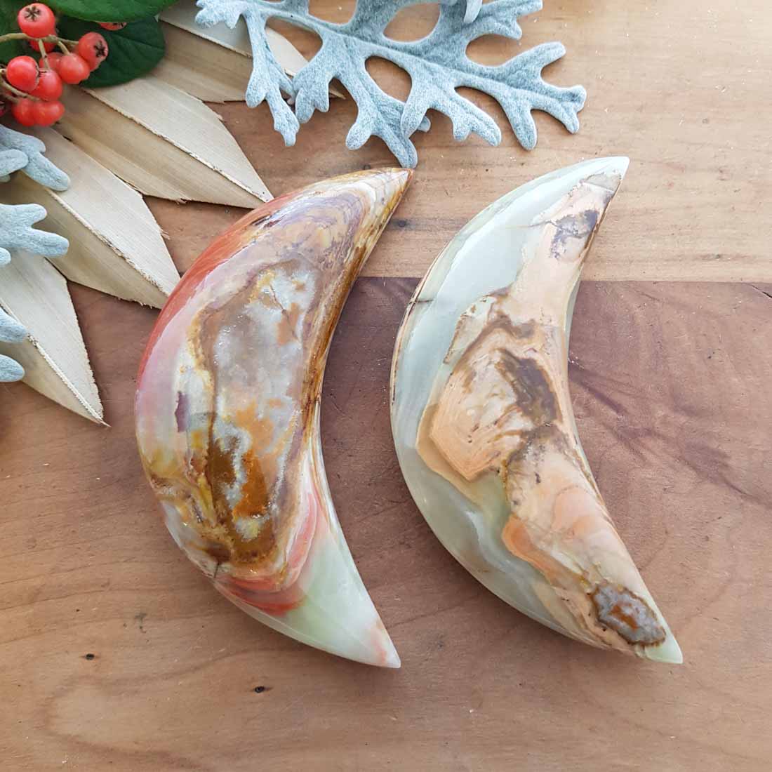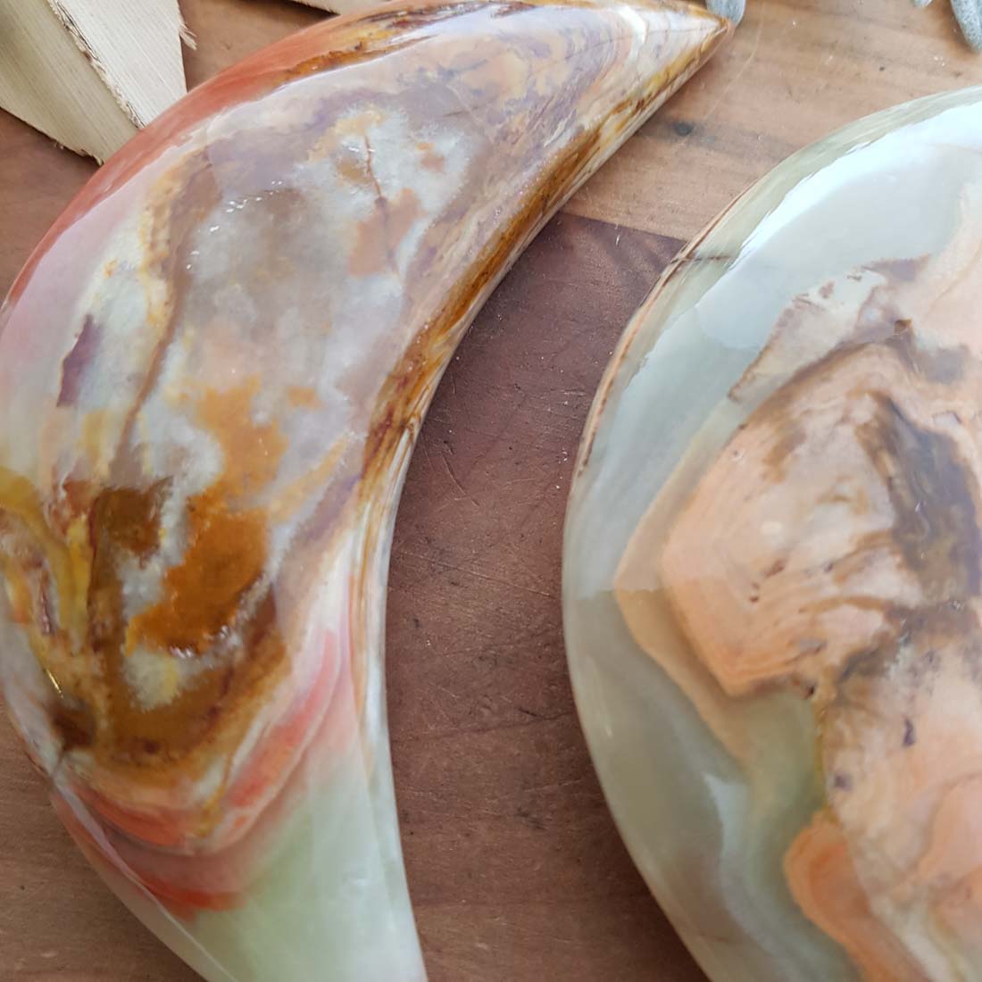 Banded Calcite aka Marble Onyx Crescent Moon (assorted. approx. 10.5x3.5x2cm)