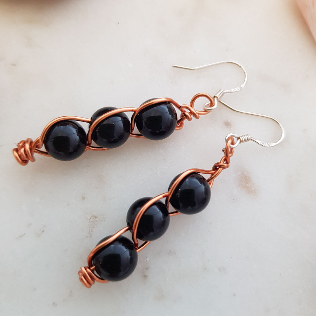 Black Obsidian Copper Wrapped Earrings (sterling silver hooks. hand crafted in NZ)