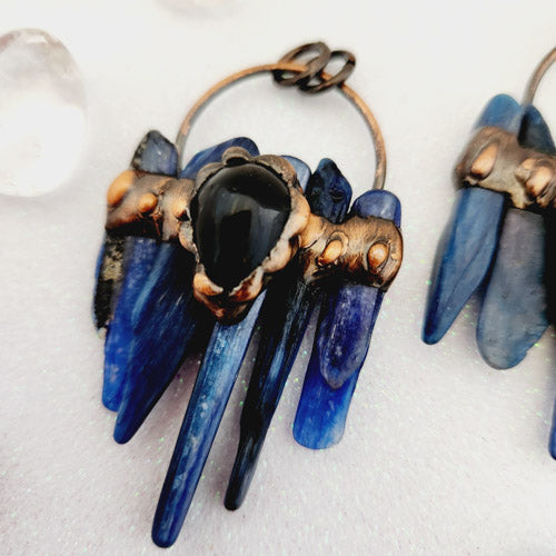 Blue Kyanite & Obsidian Pendant (copper tone brass)