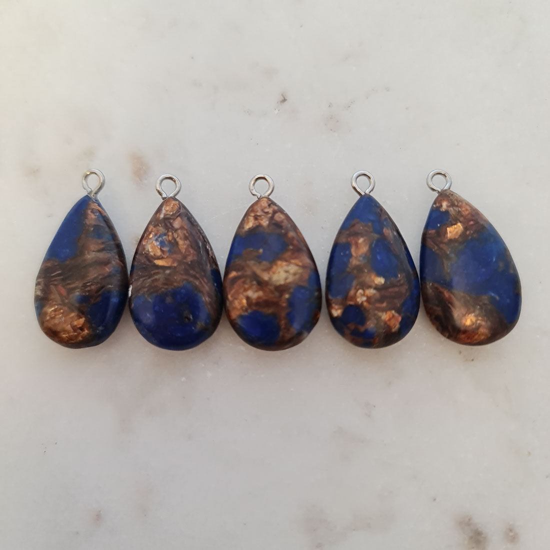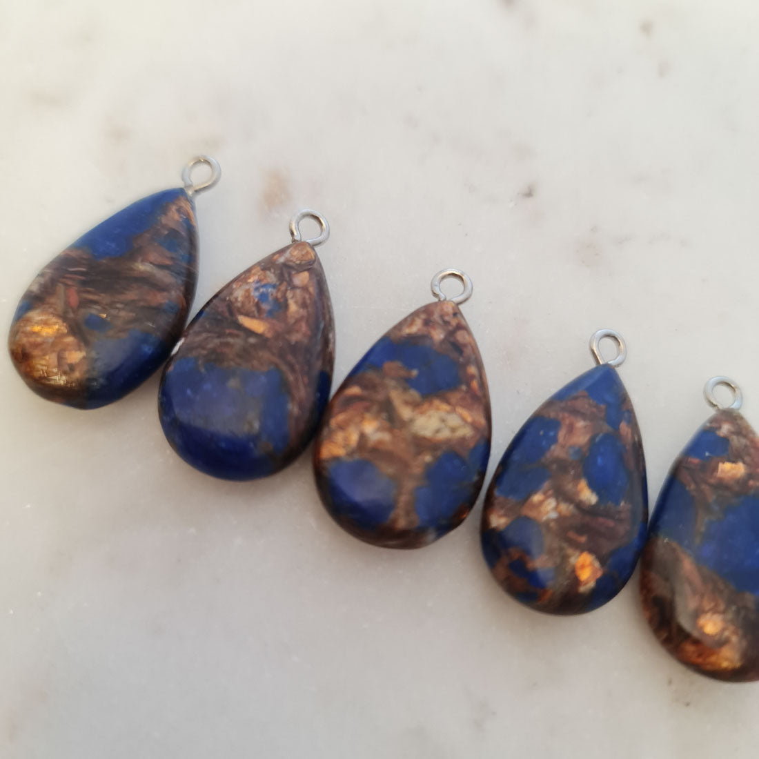 Bronzite & Lapis Tear Drop Pendant (assorted. silver metal)