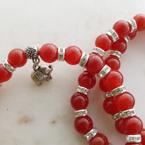 Carnelian Bracelet with Diamante Spacers & Elephant Charm (assorted)
