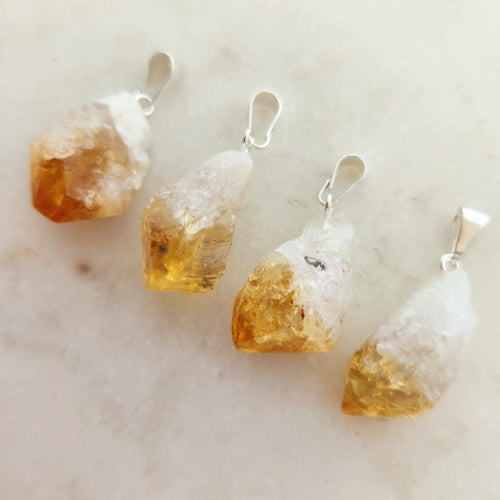 Citrine Natural Point Pendant (heat treated. assorted. silver metal)
