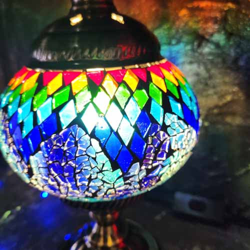 Colourful Turkish Style Mosaic Lamp (pumpkin shaped approx. 28.5cm)