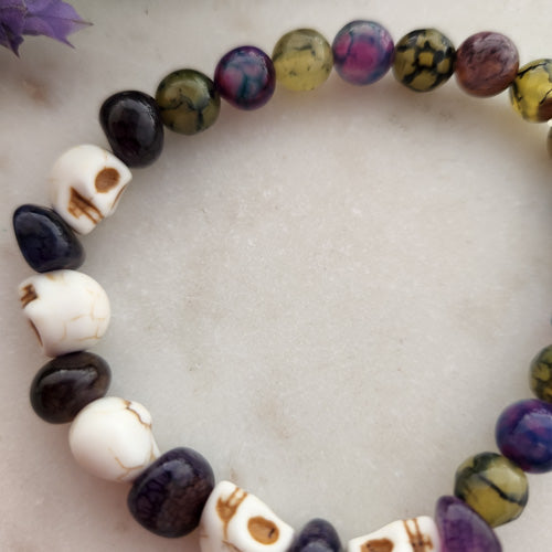 Dyed Agate & Howlite Skull Bracelet (handcrafted in Aotearoa New Zealand)
