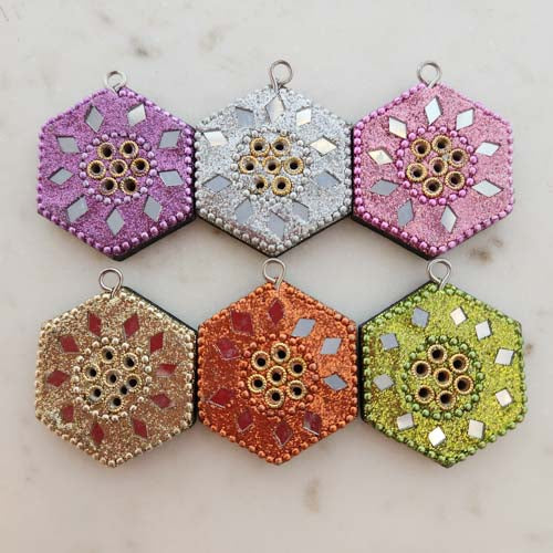 Glitter Hexagon Incense Holder assorted (approx. 4x4cm)