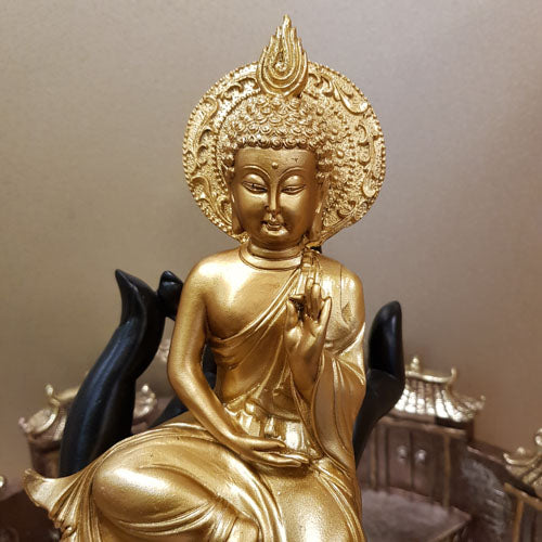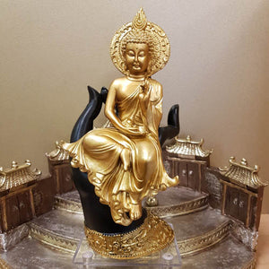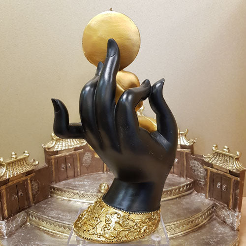 Gold Thai Buddha Sitting in Black Hand (approx. 24x13cm)