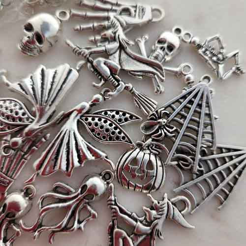 Create Your Own Halloween Earrings/Pendants (assorted designs. white metal)