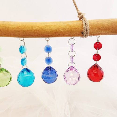 Hanging Branch of Colourful Prisms (approx. 34cm wide)