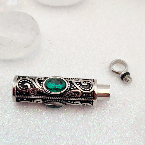 Keepsake Memorial Pendant w. Green Glass Cabochon (stainless steel)