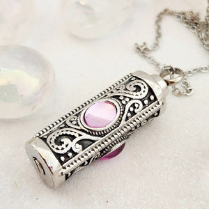 Keepsake Memorial Pendant w. Pink Glass Cabochon & Chain (stainless steel)