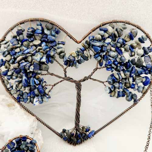 Lapis Lazuli Tree of Life Hanging Heart (approx. 42.14cm)