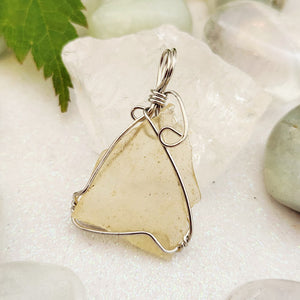 Libyan Desert Glass aka Libyan Gold Tektite Wrapped Pendant (silver metal)