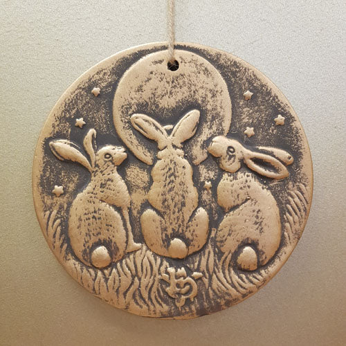 Hare's Gazing at the Moon Wall Art (bronze look terracotta. approx. 20x20cm).