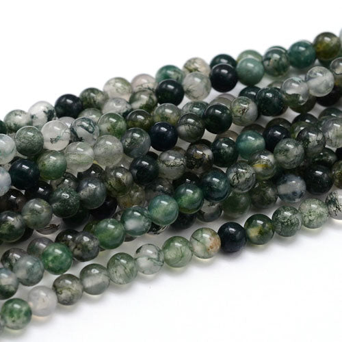 Moss Agate Round Bead Strand, 8-9mm Beads, Assorted