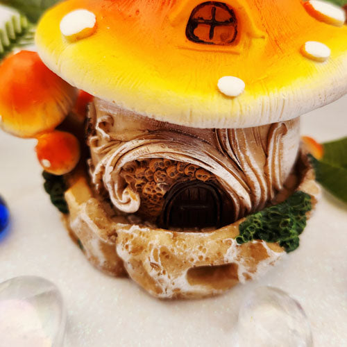 Orange Mushroom Cottage Incense Cone Holder (approx. 10x8cm)