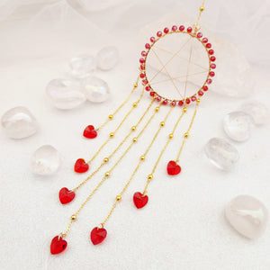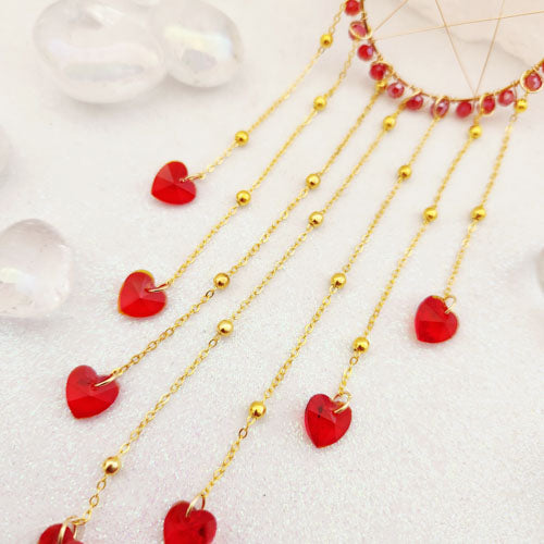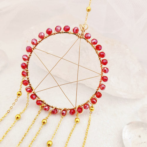 Pentagram w. Red Glass Hearts Hanging