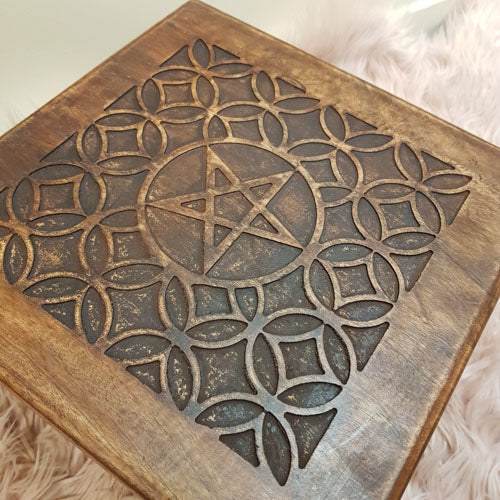 Pentacle In Flower Of Life Light Brown Alter Table (approx. 30x30x23cm)