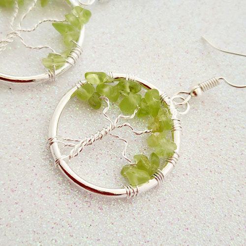 Peridot Tree of Life Earrings (silver metal)
