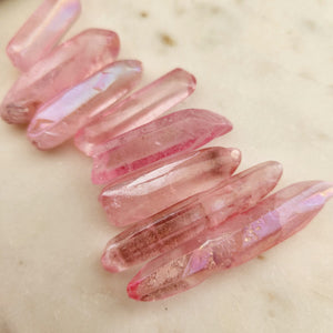 Pink Electroplated Quartz Natural Point (assorted. approx. 4-7.3x1.6-2.1cm)