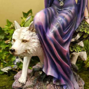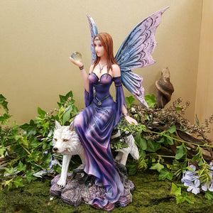 Purple Fairy With White Wolf (approx 29.5x17x17cm)