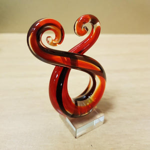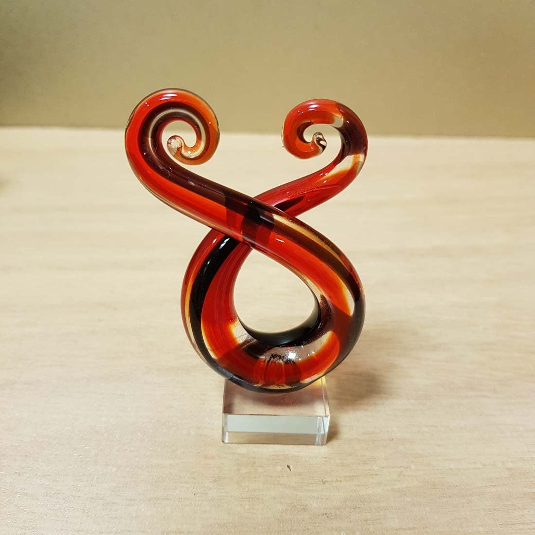 Red & Black Glass Twin Spiral Koru (approx. 8cm)